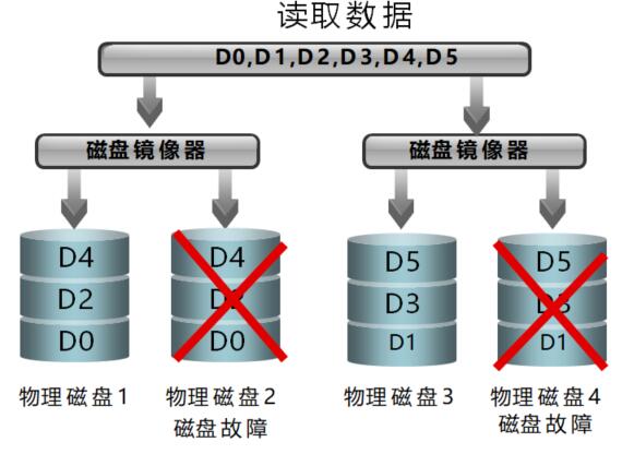 優(yōu)點(diǎn):1、高讀取速度2、高寫入速度,寫開銷較小3、特定情況下,可以允許N/2個(gè)硬盤同時(shí)損壞