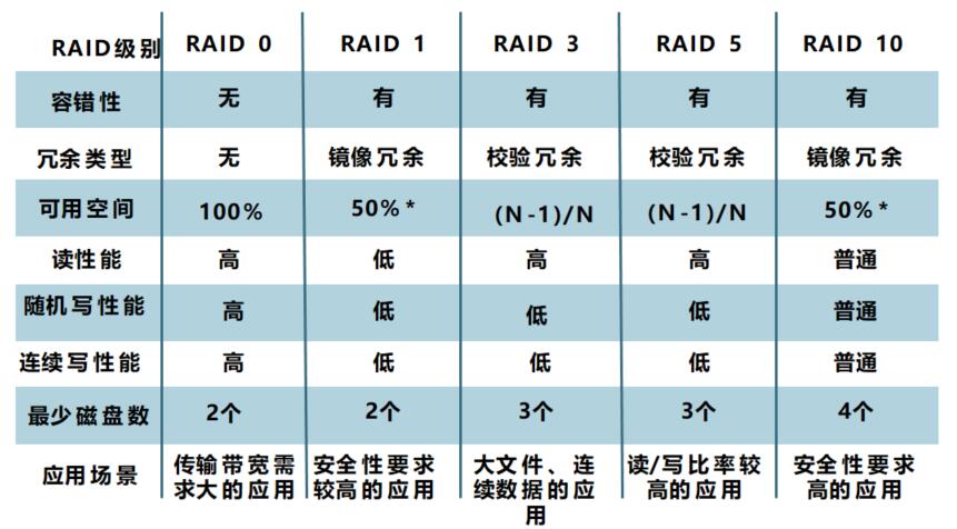 常見RAID級(jí)別的比較