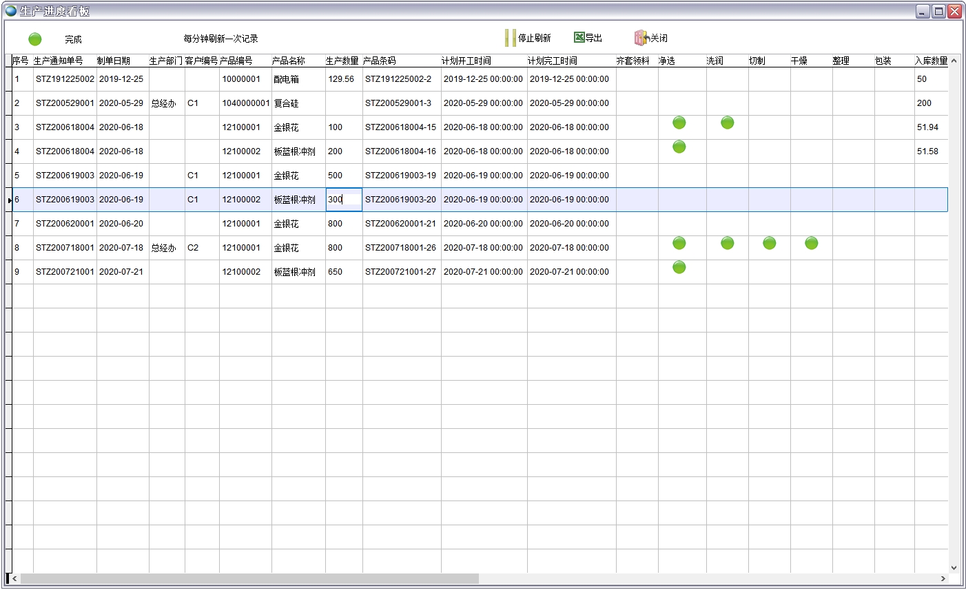 實(shí)時(shí)顯示在產(chǎn)工單(即生產(chǎn)通知單)的生產(chǎn)進(jìn)度狀況,讓管理人員隨時(shí)了解產(chǎn)線情況。