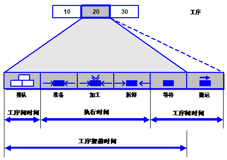 工序段和搬運(yùn)時間被用來確定一個工序的執(zhí)行時間,提前時間以及工序間隔時間。