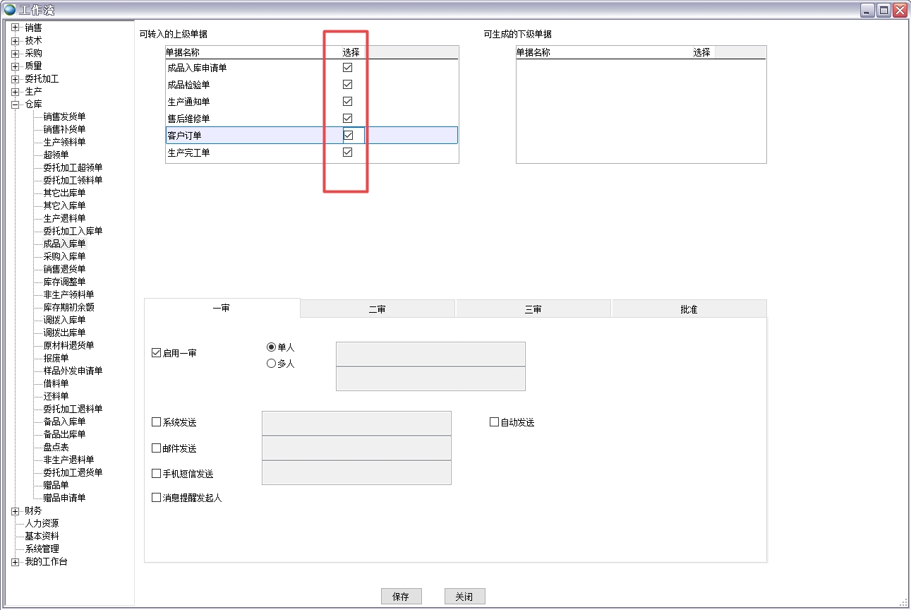 在工作流中可以增加審批人。如果增加了審批流程,則必須走完審批流程后該成品入庫單才會生效。