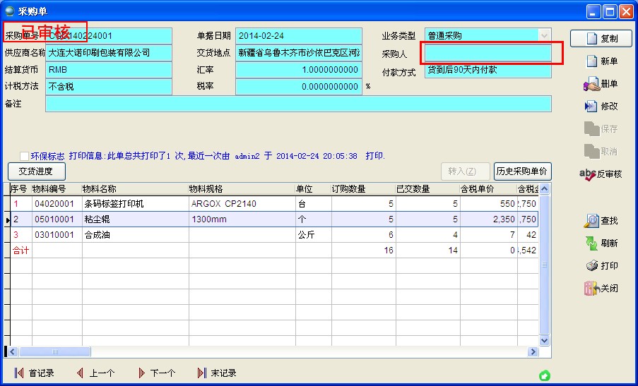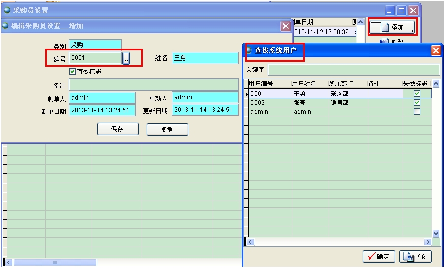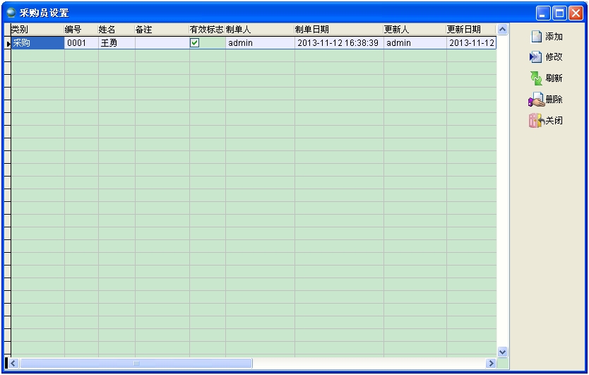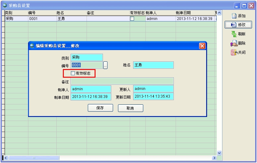 如果采購員已存在采購單則無法刪除該采購員,此時可以修改為無效,這樣該采購員就無法使用了。