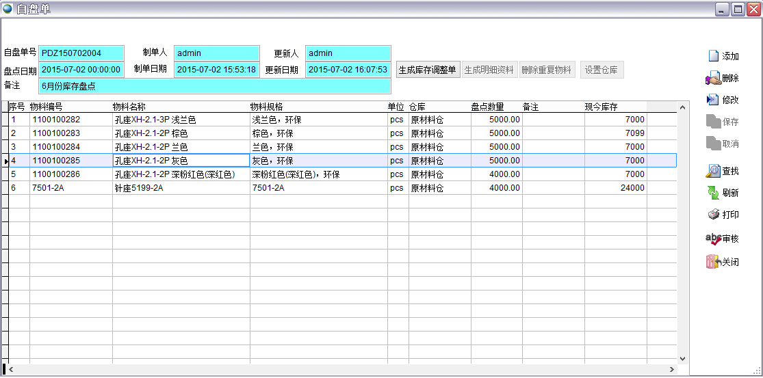 1、自盤:自盤模式操作簡單,做自盤單輸入盤點后數(shù)量即可,系統(tǒng)會自動生成庫存調整單調整差異數(shù)量。