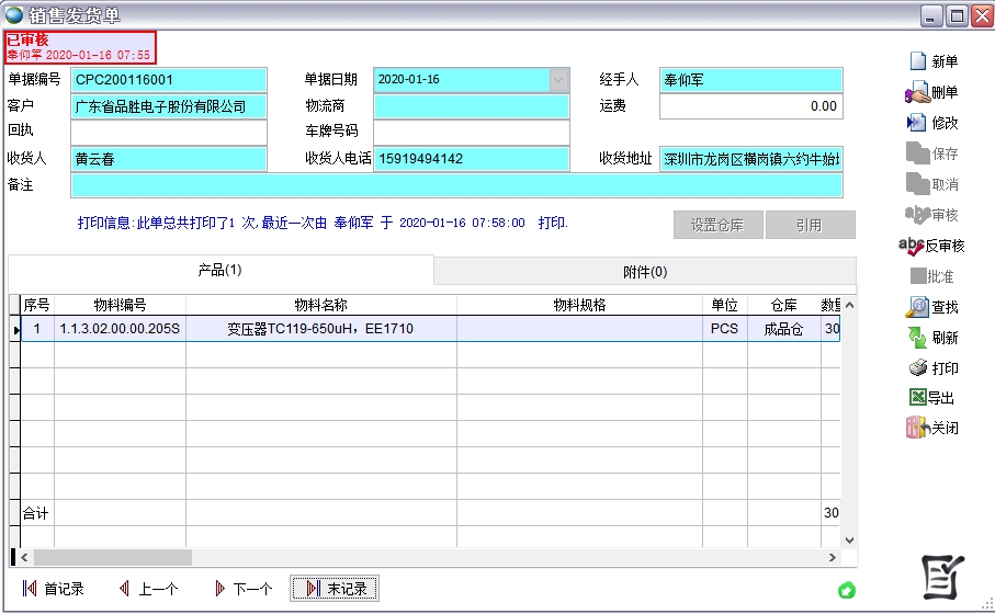 出庫單,包括銷售發(fā)貨單、生產(chǎn)領(lǐng)料單、其他入庫單、原材料退貨單、委托加工領(lǐng)料單,支持掃碼出庫功能。