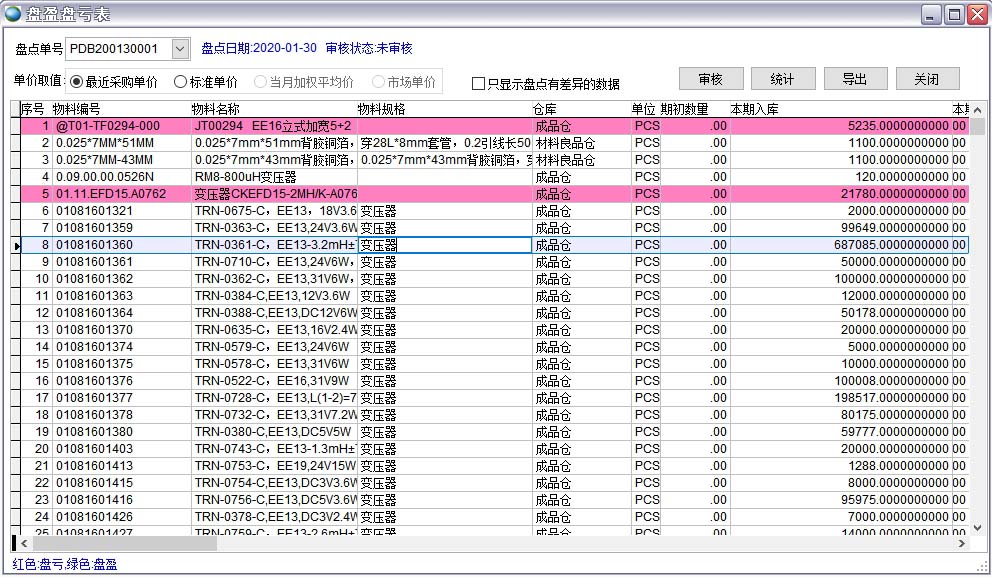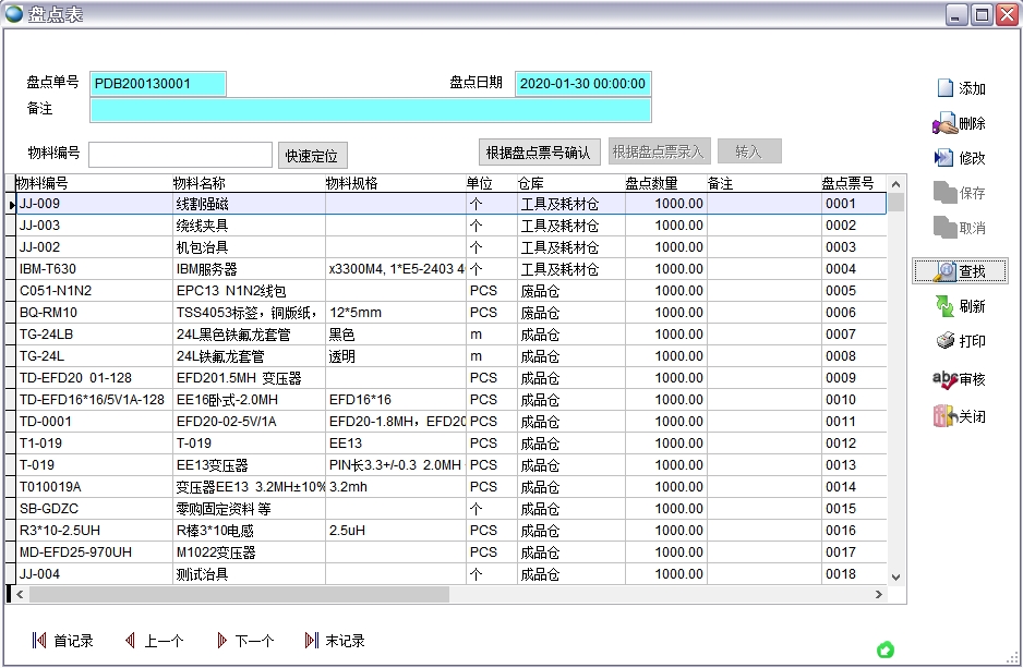 庫存盤點,包括自盤單、盤點票、盤點表、盤盈盤虧表。