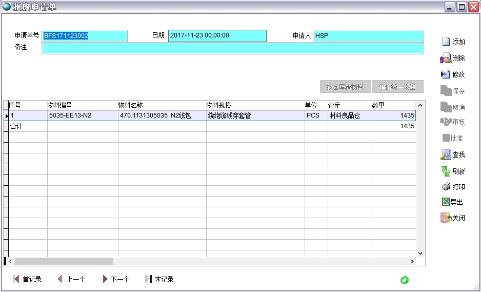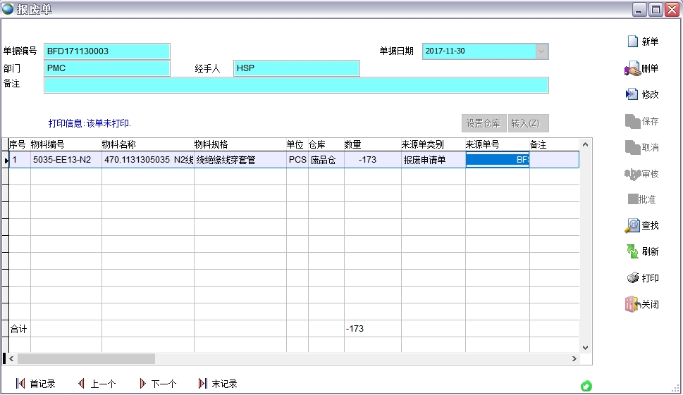 報廢單,包括報廢申請單、報廢單、報廢統(tǒng)計表。