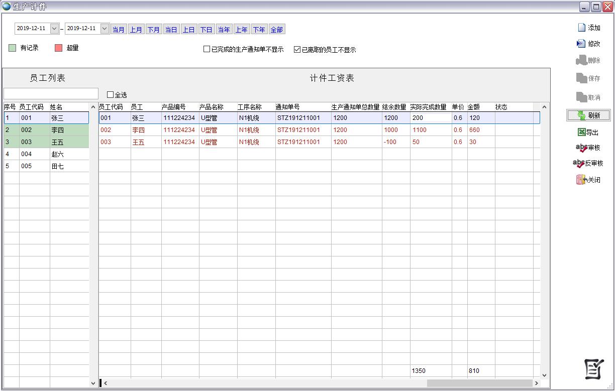 管理要求:所有工序通過掃碼完成,入庫也需要掃碼,對工序進行計件統(tǒng)計作為計件工資計算的依據(jù)