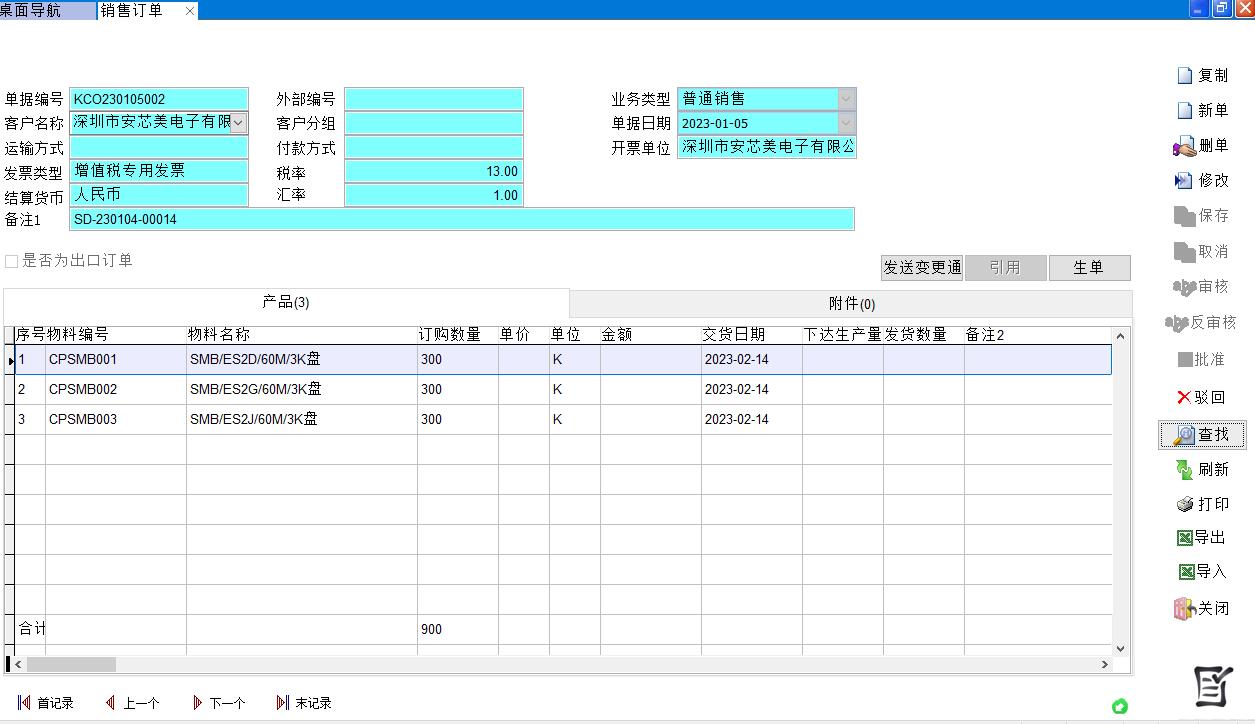 PC端的銷售訂單