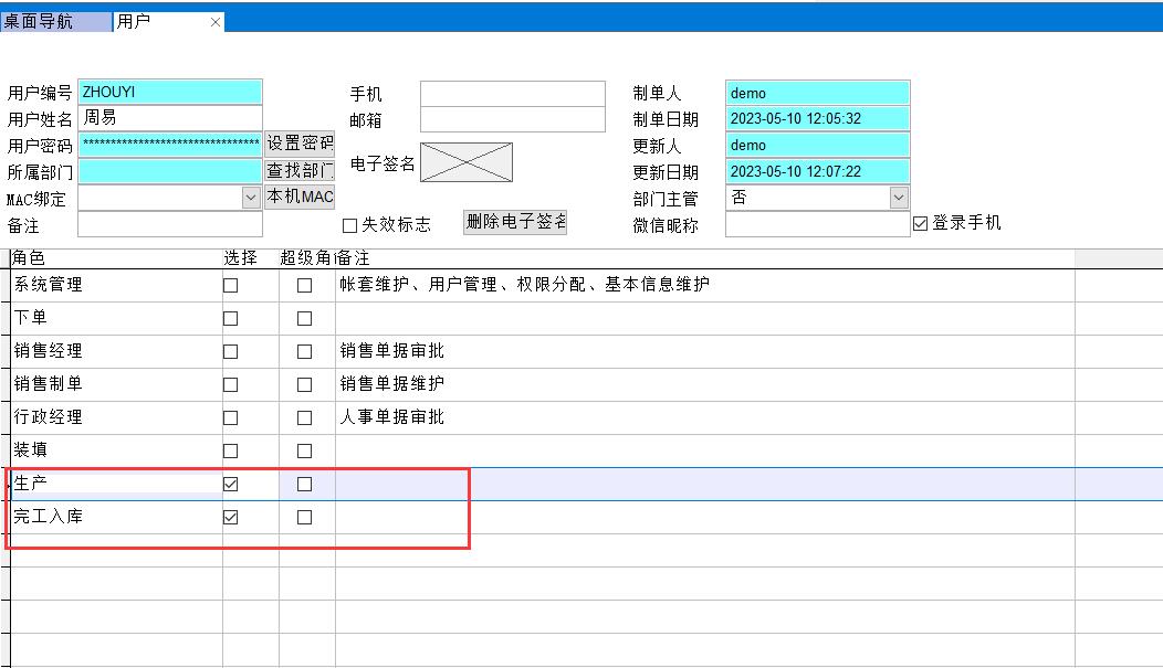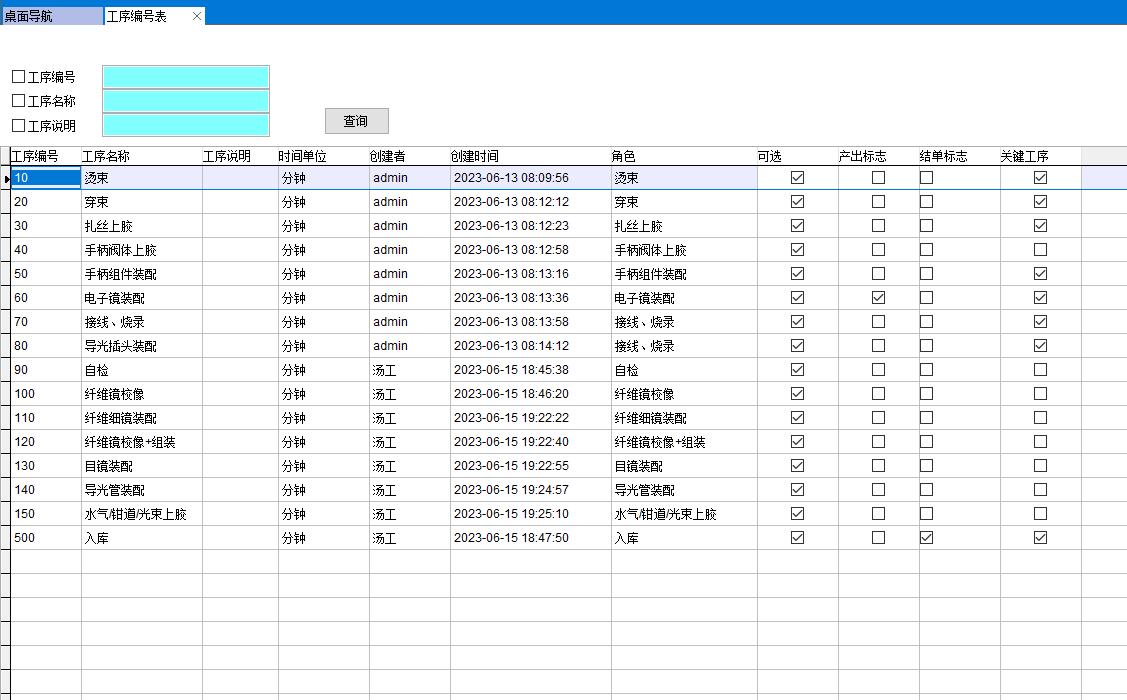工序綁定角色,角色再綁定用戶,這樣員工登錄時(shí)只能掃本崗位的工序