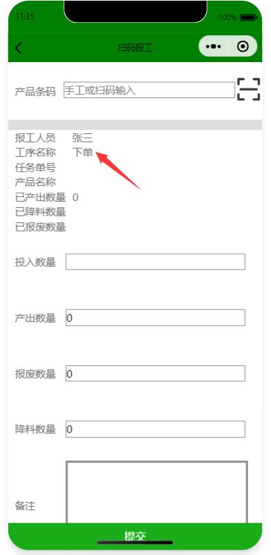 掃碼報(bào)工的界面是由車間員工操作完成的,因此操作簡單實(shí)用為主