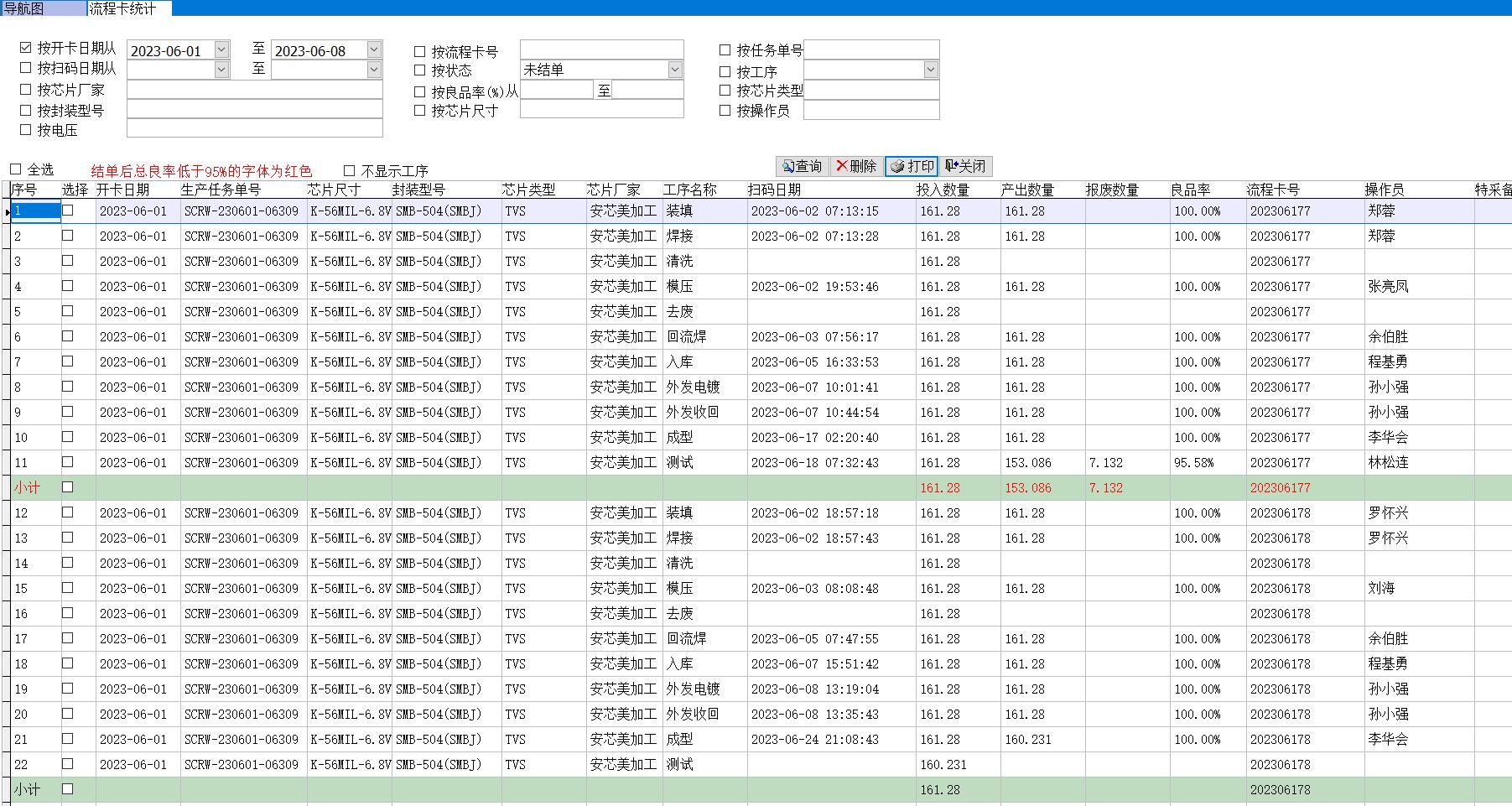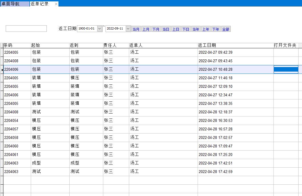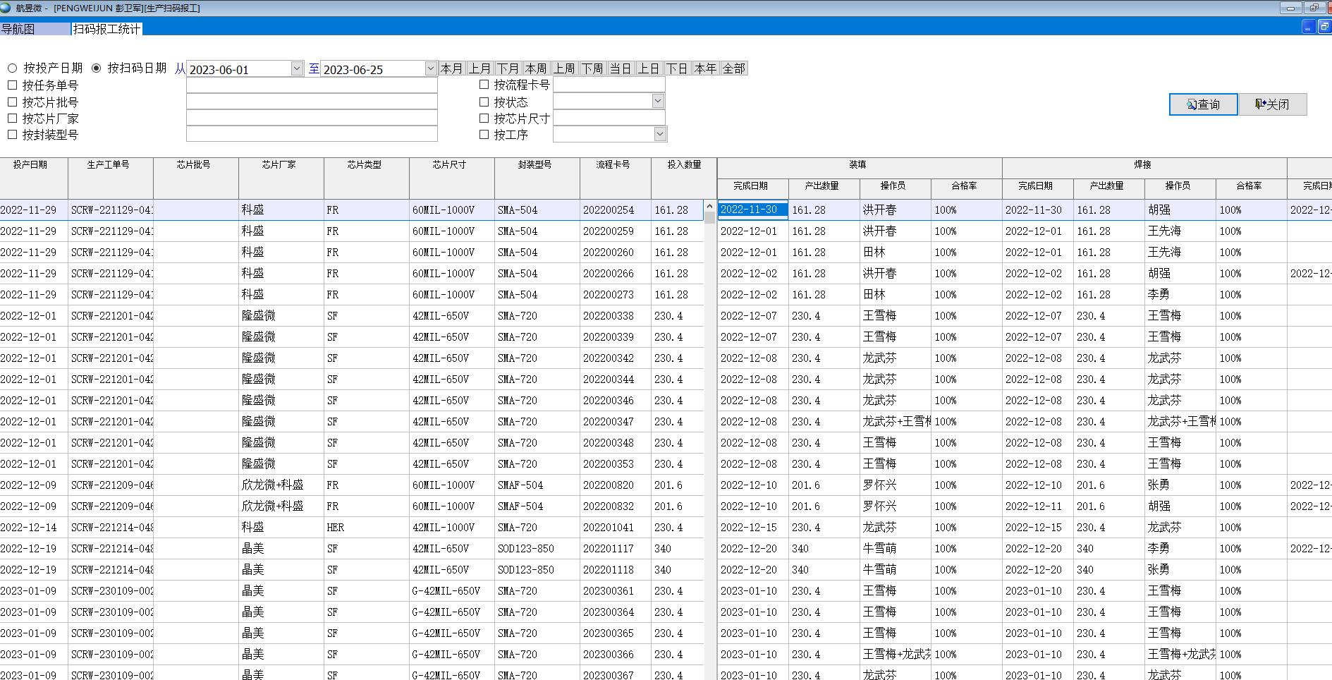 這里僅列出與工序掃碼有關(guān)的統(tǒng)計(jì)表