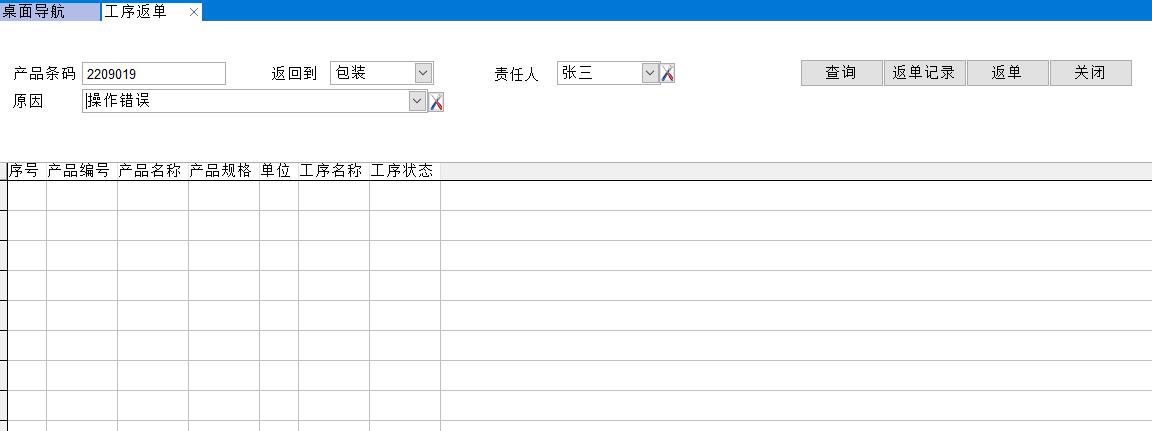 由于誤操作需要重新掃碼,返工分兩種情況:一種是只允許返回到上一道工序,第二種是允許返回到任意一道工序