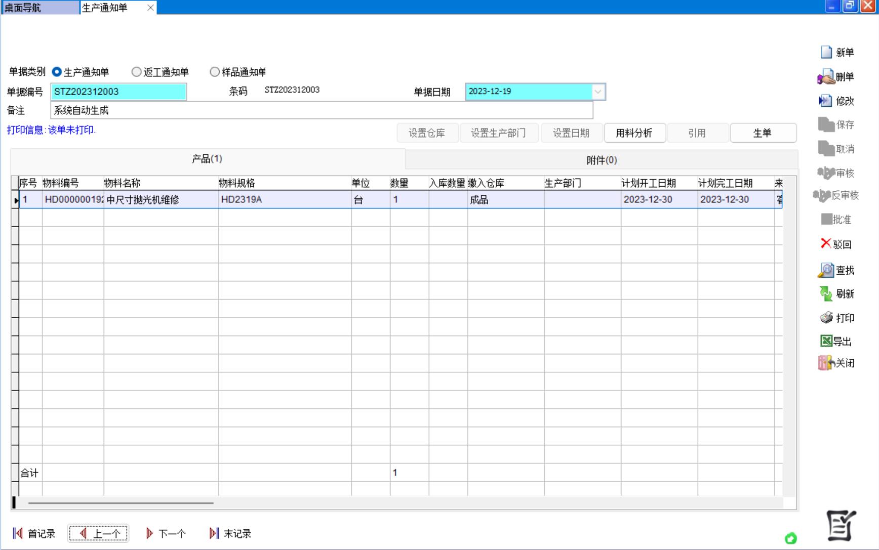 生產(chǎn)通知單