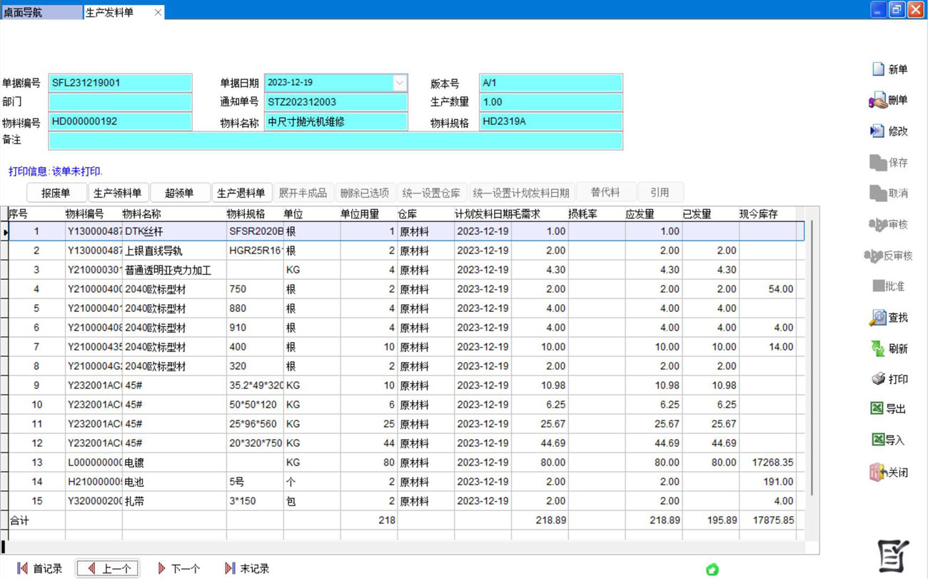 生產(chǎn)發(fā)料單