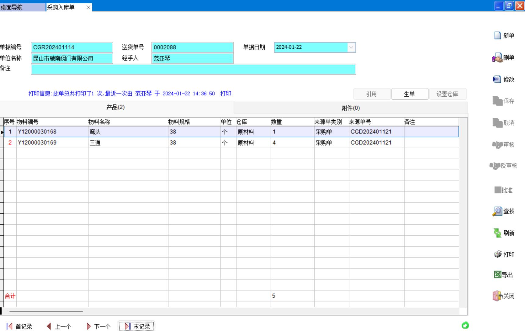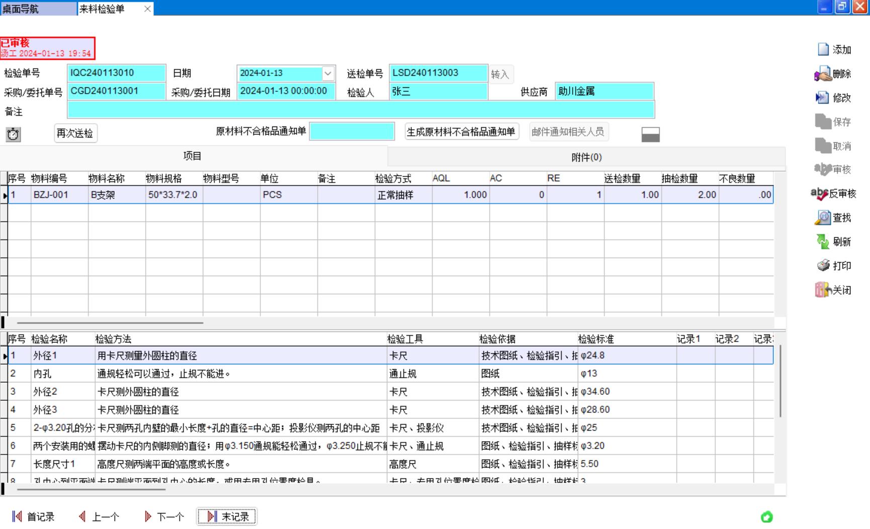 來料檢驗單