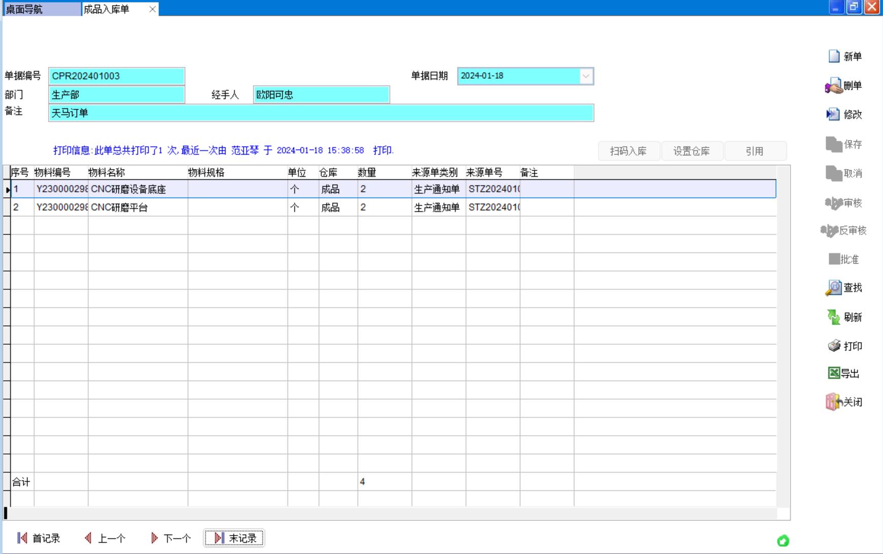 成品入庫單