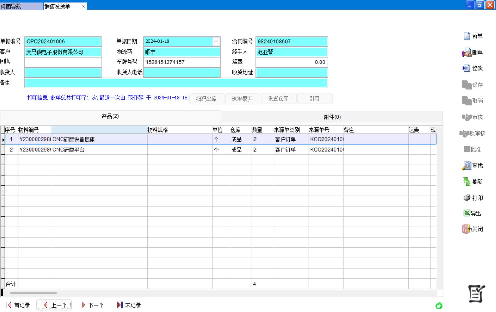 銷售發(fā)貨單