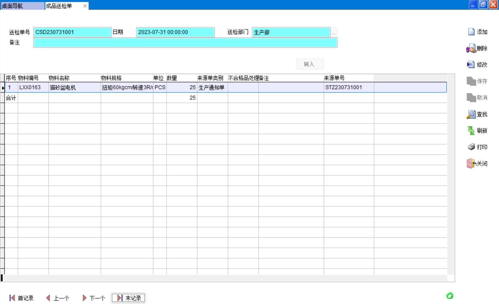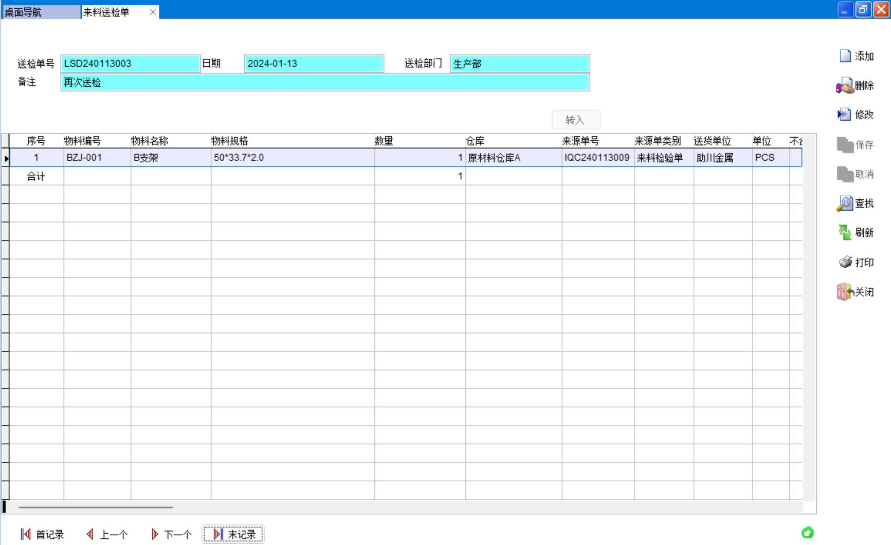 來料送檢單