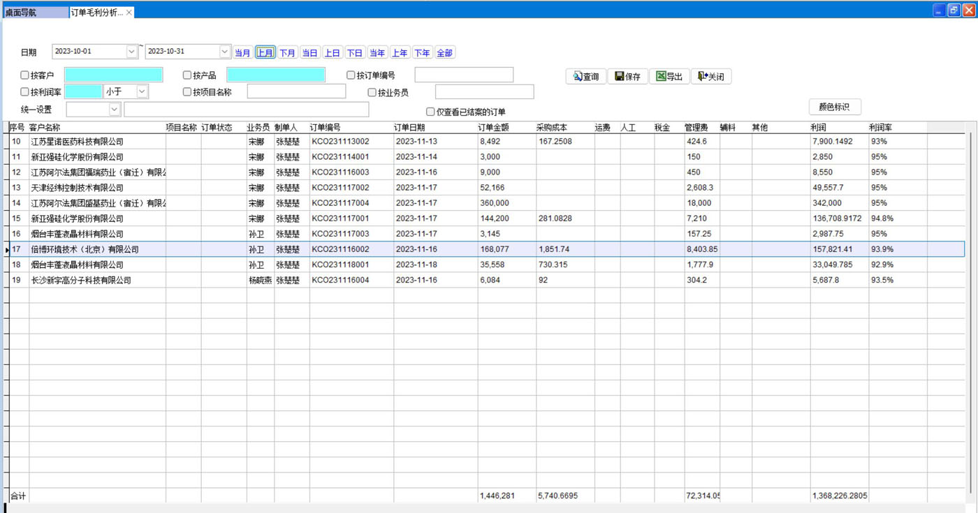 毛利分析表