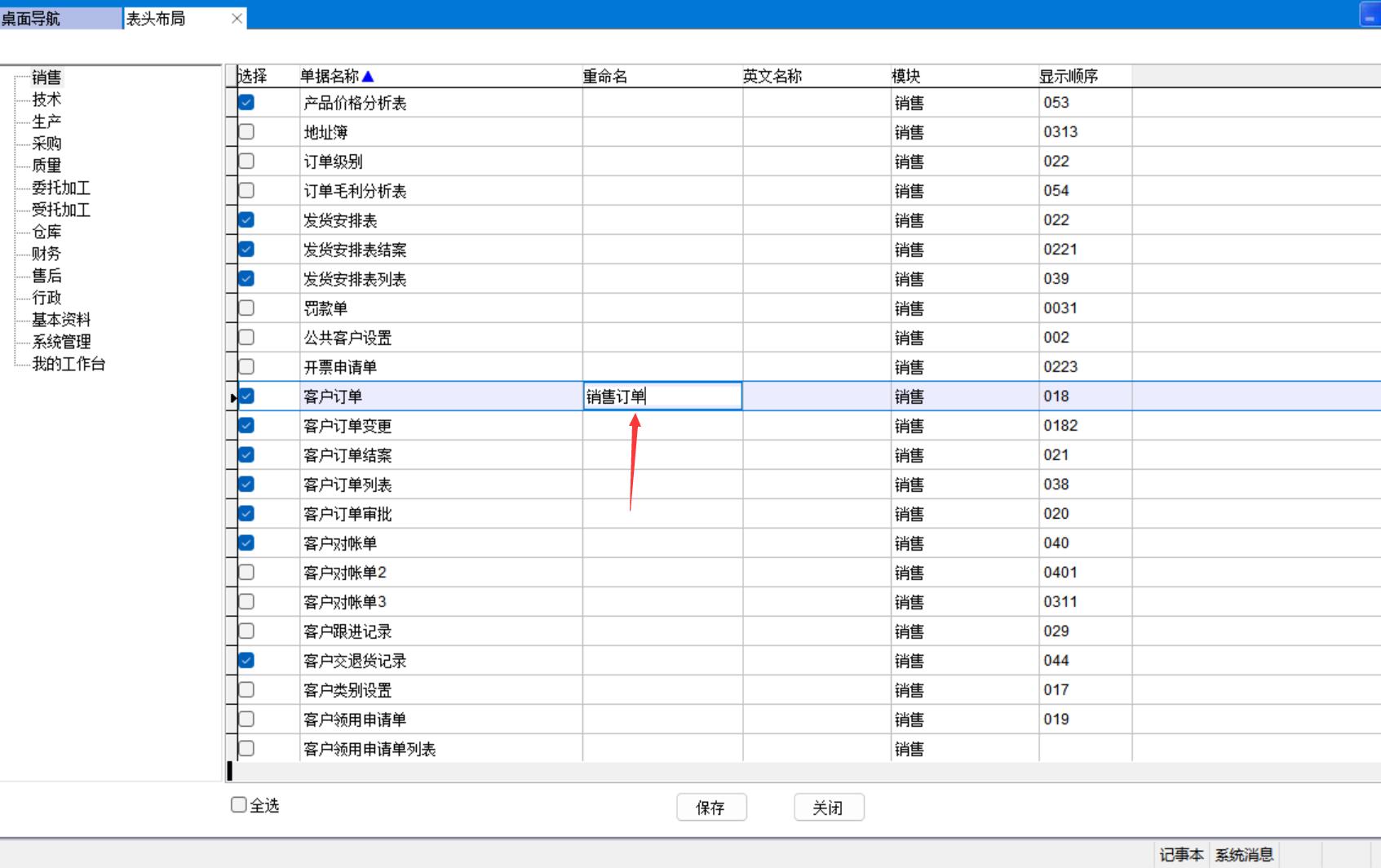 比如將系統(tǒng)默認(rèn)的客戶訂單改名為銷售訂單