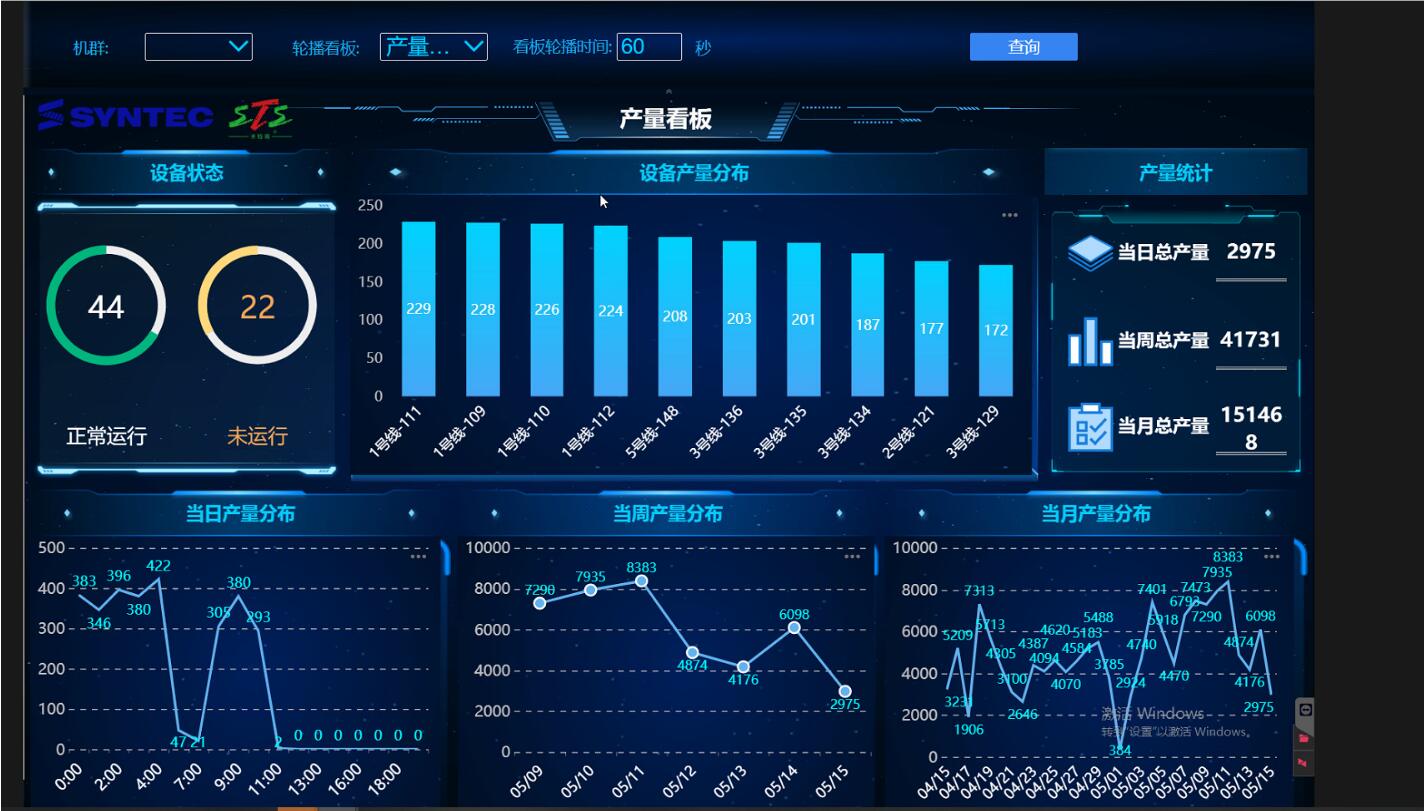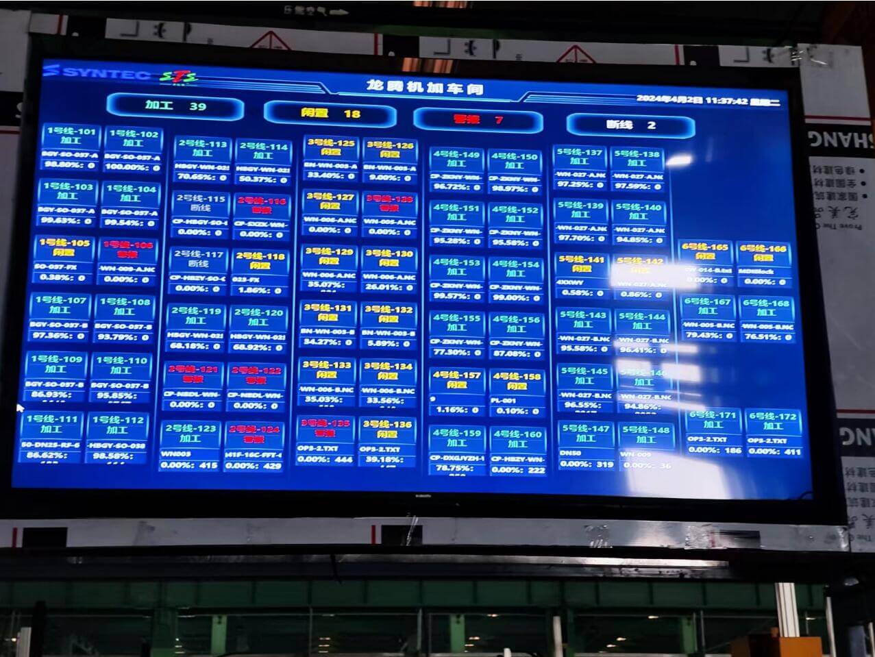 下面是設(shè)備看板,將設(shè)備參數(shù)實(shí)時(shí)傳入到數(shù)據(jù),然后在大屏上顯示。需要在每臺(tái)設(shè)備上安裝巨靈鳥數(shù)據(jù)采集盒。