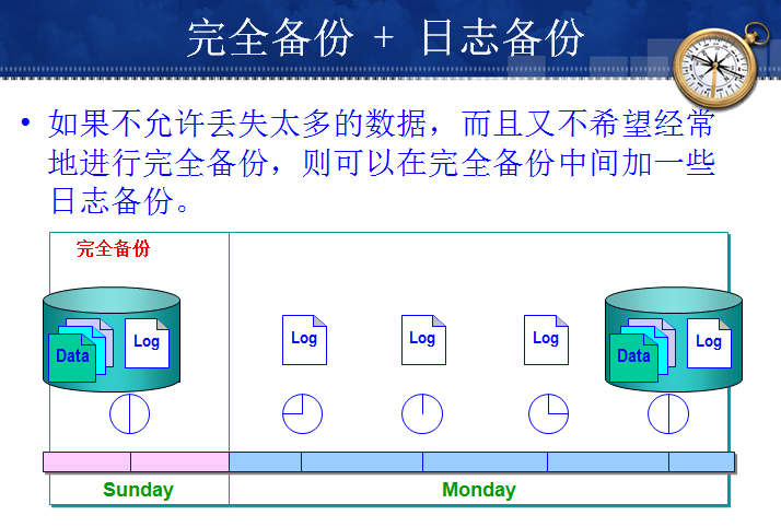 事務(wù)日志是一個(gè)單獨(dú)的文件,它記錄數(shù)據(jù)庫(kù)的改變,備份的時(shí)候只需要復(fù)制自上次備份以來對(duì)數(shù)據(jù)庫(kù)所做的改變,所以只需要很少的時(shí)間。為了使數(shù)據(jù)庫(kù)具有魯棒性,推薦每小時(shí)甚至更頻繁的備份事務(wù)日志。