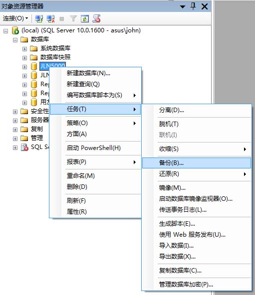 打開SSMS,選擇要備份的數(shù)據(jù)庫并點右鍵