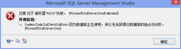 還原數(shù)據(jù)庫時如果出現(xiàn)如下畫面是因為數(shù)據(jù)庫正在被使用