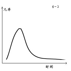 “非常正確。”我說,然后把相關(guān)的幾率分布畫出來,5分鐘到達(dá)的幾率是零,25分鐘的幾率最高,但即使是3個小時,幾率也不是零。(圖6-2)