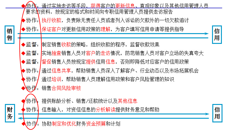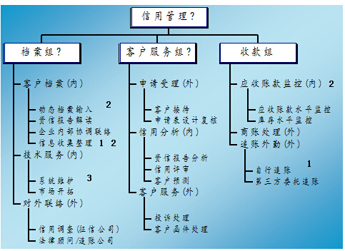 作為少數(shù)職責大于職權的工作,作為財務和銷售制衡的焦點,信用管理需要有專人全盤接受和全權負責;它和銷售/財務/外勤/信息中心等部門之間存在著服務、協(xié)作和監(jiān)督的多重關系;它代表公司最高管理層的觀點,協(xié)調財務和銷售對信用的不同理解