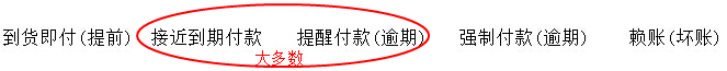 對交易一段時期的任何信用客戶,都可以總結出其習慣性的還款方式,因而需要采用有區(qū)別的信用管理(尤其是催收)策略,包括五類