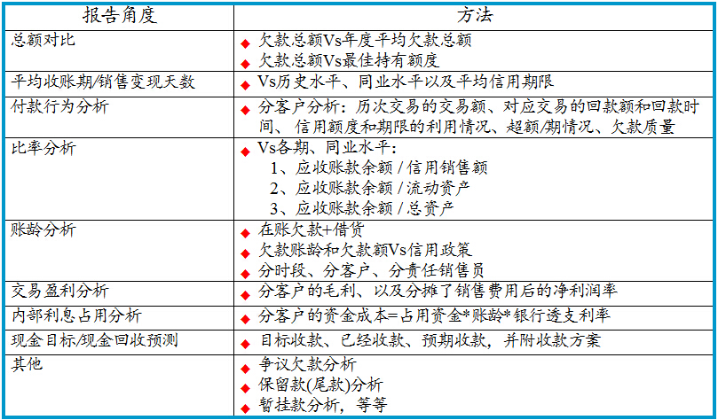 銷售和還款趨勢分析:在慣例上,從財務獲取交易數(shù)據(jù)比從銷售獲取客戶信息要容易和準確,但根據(jù)財務核算的要求,往往只停留在欠款賬齡分析上;關鍵是設計出多角度的報告內(nèi)容
