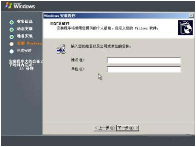這里輸入你想好的姓名(用戶名)和單位,點(diǎn)“下一步”按鈕