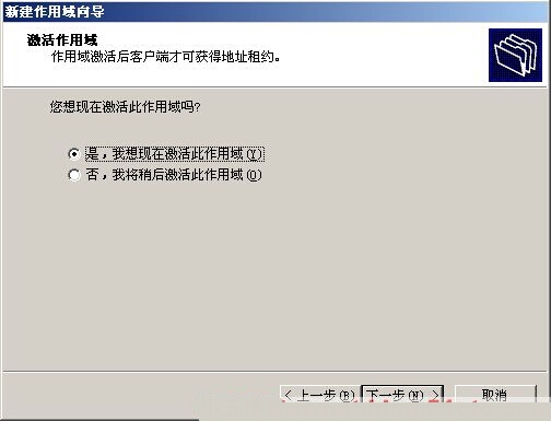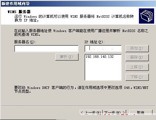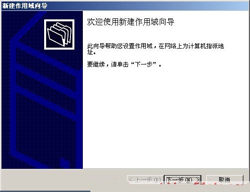 三、創(chuàng)建并激活作用域 授權(quán)后的DHCP服務(wù)器并不能直接投入使用,我們還需要進(jìn)行進(jìn)一步的配置。這一節(jié)我們將演示如何創(chuàng)建和激活作用域 1)右鍵單擊xwnet-2b87ea923.xiaowu.com[192.168.140.132]選擇新建作用域,彈出歡迎界面,單擊下一步 2)輸入作用域標(biāo)識(shí) 3)輸入IP地址范圍 4)設(shè)置排除區(qū)域,此區(qū)域的IP地址不進(jìn)行自動(dòng)分配 5)設(shè)置租約 6)設(shè)置默認(rèn)網(wǎng)關(guān) 7)設(shè)置DNS 8)設(shè)置WINS服務(wù)器地址 9)激活作用域 10)完成