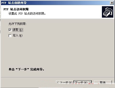 4)選擇不隔離用戶 5)選擇ftp主路徑 6)設(shè)置FTP權(quán)限 7)成功建立ftp站點(diǎn)