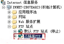 二、創(chuàng)建不隔離用戶FTP 1)單擊開始-管理工具-Internat信息服務(wù)(IIS)管理器,展開FTP站點(diǎn),右鍵單擊默認(rèn)FTP站點(diǎn)選擇停止。暫停默認(rèn)的FTP服務(wù) 2)右鍵單擊FTP站點(diǎn),選擇新建-FTP站點(diǎn),彈出歡迎界面,單擊下一步繼續(xù) 3)設(shè)置IP和端口號(hào)