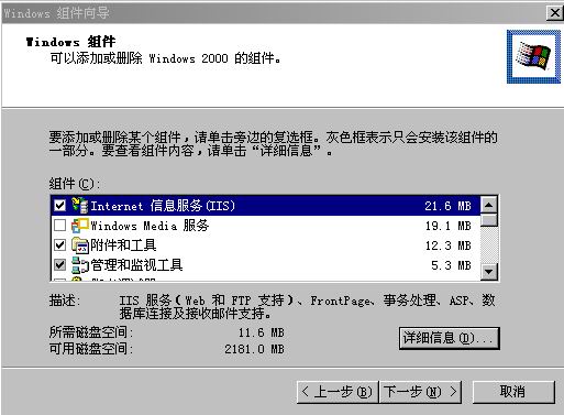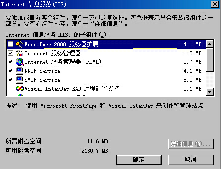 如果不使用SSI(server side include, 服務(wù)器端嵌入腳本),建議刪除“.shtm” “.stm” 和 “.shtml”這些映射.像:“.cer” “.cdx” “htr” “idc” “printer”等,如無特別需要,建議只保留“.asp”和“.asa”的映射。 Frontpage擴(kuò)展服務(wù) 從控制面板里面打開“添加或刪除程序”選擇“添加/刪除windows組件” 選擇“Internet信息服務(wù)(IIS)”,點(diǎn)“詳細(xì)信息”,請(qǐng)確認(rèn)FrontPage 2000服務(wù)器擴(kuò)展沒有被勾上。如果有,則取消掉,點(diǎn)確定就可以了。