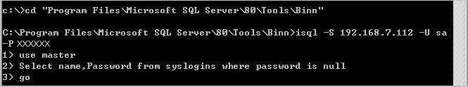 接著輸入:isql –S 服務(wù)器IP -U sa –P sa用戶的密碼