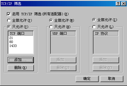 該命令就是把用戶名為“netconf”的密碼由原來的“netconf”改成“netconf1”。 2、使用安全的帳號策略。 由于SQL Server不能更改sa用戶名稱,也不能刪除這個超級用戶,所以,我們必須對這個帳號進(jìn)行最強的保護(hù),首先要選擇一個非常強壯的密碼。 其次,最好不要在數(shù)據(jù)庫應(yīng)用中使用sa帳號,只有當(dāng)沒有其它方法登錄到 SQL Server時才使用 sa。建議數(shù)據(jù)庫管理員新建立一個擁有與sa一樣權(quán)限的超級用戶來管理數(shù)據(jù)庫。安全的帳號策略還包括不要讓管理員權(quán)限的帳號泛濫。 SQL Server的認(rèn)證模式有Windows身份認(rèn)證和混合身份認(rèn)證兩種。如果數(shù)據(jù)庫管理員不希望操作系統(tǒng)管理員來通過操作系統(tǒng)登陸來接觸數(shù)據(jù)庫的話,可以在帳號管理中把系統(tǒng)帳號“BUILTIN\Administrators”刪除。不過這樣做的結(jié)果是一旦sa帳號忘記密碼的話,就沒有辦法來恢復(fù)了。 很多主機使用數(shù)據(jù)庫應(yīng)用只是用來做查詢、修改等簡單功能的,請根據(jù)實際需要分配帳號,并賦予僅僅能夠滿足應(yīng)用要求和需要的權(quán)限。比如,只要查詢功能的,那么就使用一個簡單的public帳號能夠select就可以了。 3、管理擴展存儲過程。 對存儲過程進(jìn)行大手術(shù),并且對帳號調(diào)用擴展存儲過程的權(quán)限要慎重。其實在多數(shù)應(yīng)用中根本用不到多少系統(tǒng)的存儲過程,而SQL Server的這么多系統(tǒng)存儲過程只是用來適應(yīng)廣大用戶需求的,所以請刪除不必要的存儲過程,因為有些系統(tǒng)的存儲過程能很容易地被人利用起來提升權(quán)限或進(jìn)行破壞。 如果你不需要擴展存儲過程xp_cmdshell請把它去掉。使用這個SQL語句: use master EXEC sp_dropextendedproc 'xp_cmdshell' xp_cmdshell是進(jìn)入操作系統(tǒng)的最佳捷徑,是數(shù)據(jù)庫留給操作系統(tǒng)的一個大后門。如果你需要這個存儲過程,請用這個語句也可以恢復(fù)過來。 EXEC sp_addextendedproc 'xp_cmdshell', 'xpsql70.dll' 如果你不需要請丟棄OLE(對象鏈接與嵌套,Object Linking and Embedding)自動存儲過程(會造成管理器中的某些特征不能使用),這些過程包括如下: EXEC Sp_OACreate Sp_OADestroy Sp_OAGetErrorInfo Sp_OAGetProperty &, nbsp; Sp_OAMe, , , , thod Sp_OASetProperty Sp_OAStop 去掉不需要的注冊表訪問的存儲過程,注冊表存儲過程甚至能夠讀出操作系統(tǒng)管理員的密碼來,如下: Xp_regaddmultistring Xp_regdeletekey Xp_regdeletevalue Xp_regenumvalues Xp_regread Xp_regremovemultistring Xp_regwrite 還有一些其他的擴展存儲過程,你也最好檢查檢查。 在處理存儲過程的時候,請確認(rèn)一下,避免造成對數(shù)據(jù)庫或應(yīng)用程序的傷害。 7、對網(wǎng)絡(luò)連接進(jìn)行IP限制 SQL Server 2000數(shù)據(jù)庫系統(tǒng)本身沒有提供網(wǎng)絡(luò)連接的安全解決辦法,但是Windows 2000提供了這樣的安全機制。使用操作系統(tǒng)自己的IPSec可以實現(xiàn)IP數(shù)據(jù)包的安全性。請對IP連接進(jìn)行限制,只保證自己的IP能夠訪問,也拒絕其他IP進(jìn)行的端口連接,把來自網(wǎng)絡(luò)上的安全威脅進(jìn)行有效的控制。 在windows 2000中提供了一種叫IPsec的安全工具,它能通過自定義規(guī)則來允許或者拒絕其他用戶通過TCP/IP協(xié)議來訪問服務(wù)器某個端口。 在網(wǎng)絡(luò)屬性里面,選擇網(wǎng)卡的“本地連接”“tcp/ip屬性”選擇“高級” 選擇屬性,勾選“啟用TCP/IP篩選(所有示配器)”