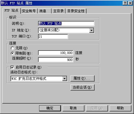 這樣,其他用戶通過這塊網(wǎng)卡就只能訪問到服務(wù)器的21,80,1433端口了。 Windows NT/2000的日志文件通常有應(yīng)用程序日志,安全日志、系統(tǒng)日志、DNS服務(wù)器日志、FTP日志、WWW日志等等。當(dāng)非法用戶探測系統(tǒng)信息的時候,就會在安全日志里迅速地記下機器被探測時所用的用戶名、時間等等,用FTP探測后,也會立刻在FTP日志中記下IP、時間、探測所用的用戶名和密碼等等,由此可見日志審計的重要性。以下即是對各種服務(wù)日志文件的默認(rèn)位置和文件內(nèi)容描述: 關(guān)于日志文件默認(rèn)位置: 應(yīng)用程序日志、安全日志、系統(tǒng)日志、DNS等服務(wù)日志的默認(rèn)位置在系統(tǒng)安裝目錄下的system32\config下。 關(guān)于日志文件保存目錄詳細(xì)描述: 安全日志文件:系統(tǒng)安裝目錄\system32\config\SecEvent.EVT 系統(tǒng)日志文件:系統(tǒng)安裝目錄\system32\config\SysEvent.EVT 應(yīng)用程序日志文件:系統(tǒng)安裝目錄\system32\config\AppEvent.EVT FTP日志默認(rèn)位置:系統(tǒng)安裝目錄\system32\logfiles\msftpsvc1\日志文件 WWW日志默認(rèn)位置:系統(tǒng)安裝目錄\system32\logfiles\w3svc1\日志文件 定時(Scheduler)服務(wù)日志默認(rèn)位置:系統(tǒng)安裝目錄\schedlgu.txt 安全日志文件,系統(tǒng)日志文件,應(yīng)用程序日志文件,這三個日志記錄都是有系統(tǒng)的一個稱為: Event Log服務(wù)生成的,Event Log 的作用是記錄程序和 Windows 發(fā)送的事件消息。事件日志包含對診斷問題有所幫助的信息。停止和啟動該服務(wù)就可以停止或者開始記錄上述三個日志文件。 FTP日志和WWW日志均是在Internet信息服務(wù)里面配置和控制。 在控制面板,管理工具里面打開Internet信息服務(wù),如下圖: 其中“dumplogin”是機器名,分別右鍵“默認(rèn)FTP站點”“默認(rèn)Web站點”,選擇“屬性”,以FTP的為例: