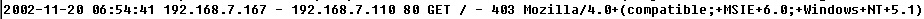 每一行的意思: 04:11:03:事件發(fā)生的時(shí)間,日期由文件名(如果是設(shè)置每天記錄)決定。 192.168.7.201: 訪問方IP [1]: 為FTP標(biāo)示每個(gè)連接的ID號。 USER anonymous: 表示訪問用戶是anonymous 331: 狀態(tài)碼 注:日志記錄的各個(gè)字段的意義并不是固定的,取決與配置FTP日志文件格式選擇的字段。 以某個(gè)WWW服務(wù)器日志記錄為例: