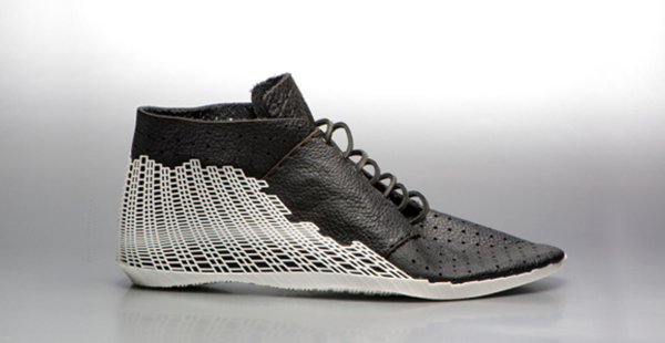 設(shè)計(jì)師首先對(duì)腳進(jìn)行三維掃描,以確保一個(gè)完美的結(jié)合,然后利用選擇性激光燒結(jié)技術(shù)對(duì)皮革片進(jìn)行激光切割,然后將三維打印的尼龍鞋與皮革進(jìn)行整合。這是傳統(tǒng)工藝與現(xiàn)代快速制造技術(shù)的完美結(jié)合。