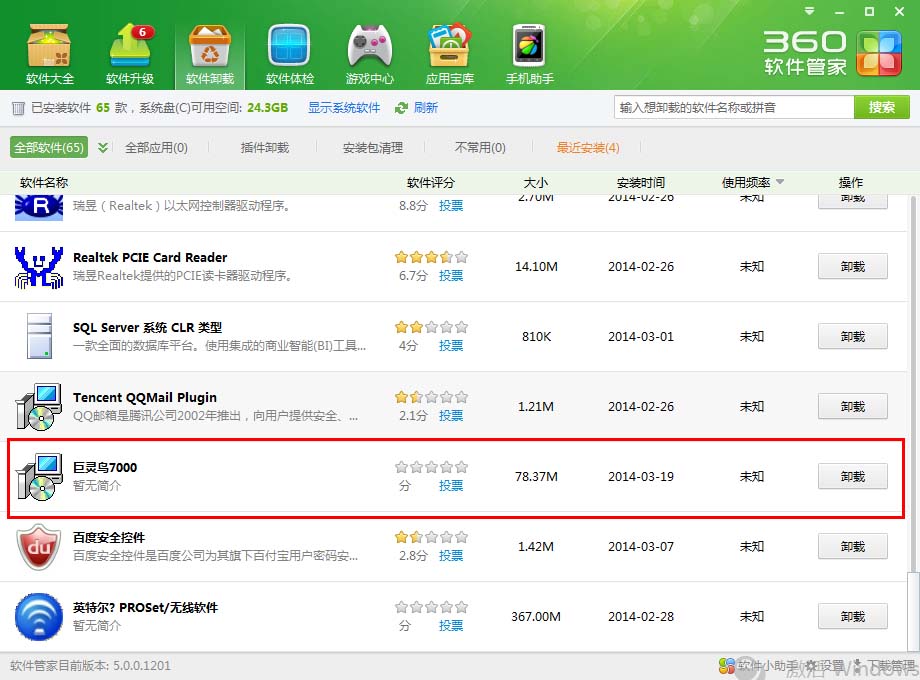 在巨靈鳥7000的471版本和巨靈鳥5000的3082版本之前版本才出現(xiàn)無法卸載的問題,之后版本都沒有這個問題。
