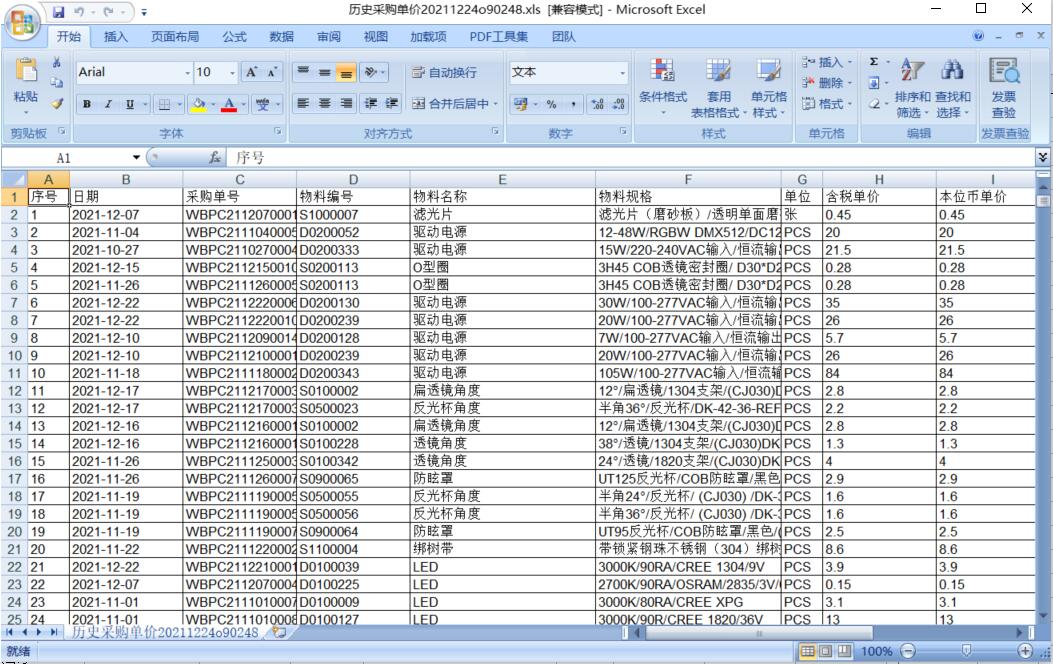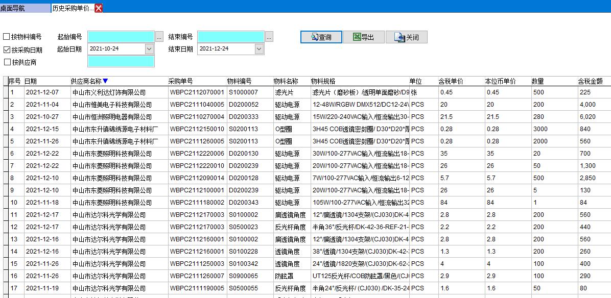 打開路徑:【首頁】-【工作臺(tái)】-【采購】-【報(bào)表】-【歷史采購單價(jià)】