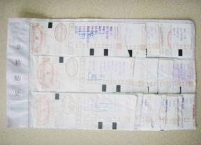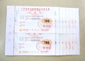 二、 粘貼的票據(jù)與粘貼單上下、左右對(duì)齊,不可超過貼貼單上下及左右邊界,每張票據(jù)約錯(cuò)開1厘米左右的距離,票據(jù)呈魚鱗狀分布。