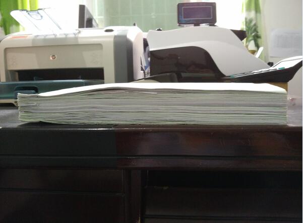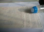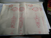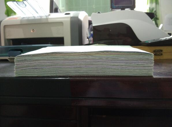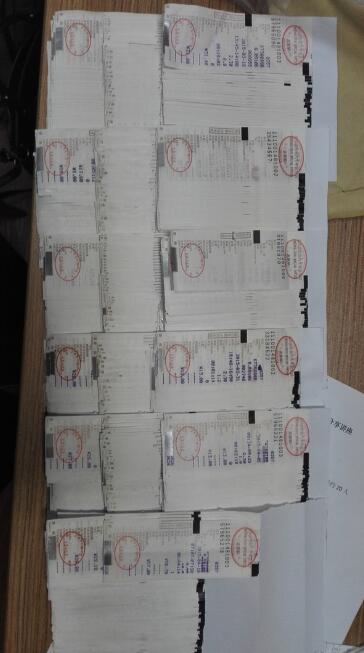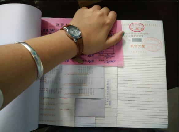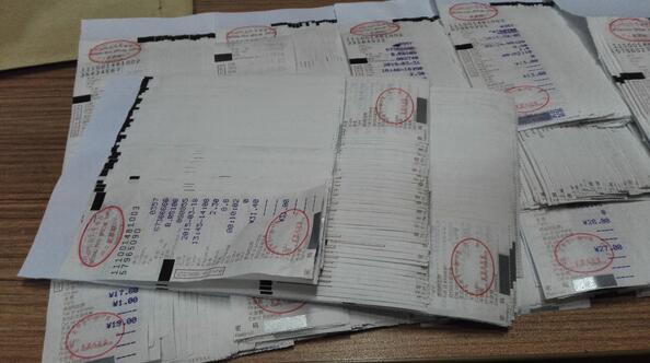 這個(gè)就是折好的墊子,為了領(lǐng)導(dǎo)簽閱方便所有的發(fā)票都是編號(hào)的寫上1——xx號(hào)共計(jì)金額xx元,像千元版百元版的手寫發(fā)票不是背后都有一層紫色的復(fù)寫紙一樣的東西,要先把它貼到廢紙上把復(fù)寫的那層粘下來,在貼到粘貼單上。要是不這樣做的話發(fā)票一扯就掉。