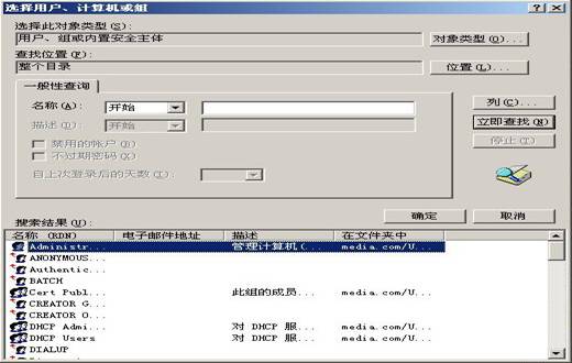 33.選擇的系統(tǒng)帳戶對(duì)象會(huì)在相應(yīng)的表框內(nèi)顯示,點(diǎn)擊【確定】按鈕,如下圖所示: