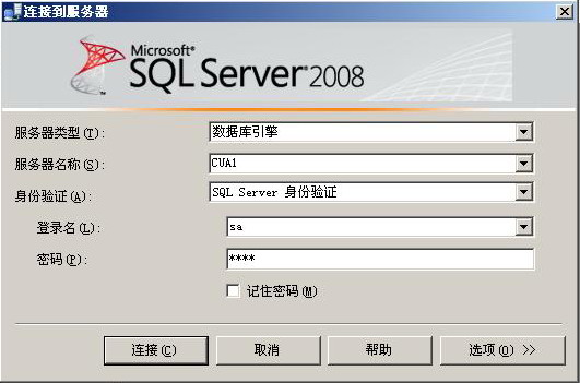 2.出現(xiàn)SQL Server 2008數(shù)據(jù)庫的連接界面,如下圖所示: