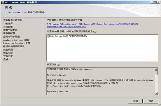 45.擊【關(guān)閉】按鈕,即可完成SQL Sever 2008的安裝。