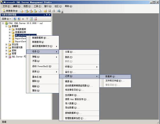 7.右鍵db_platformesb_main數(shù)據(jù)庫,如下圖所示:
